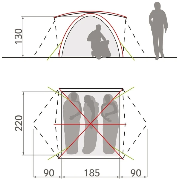 Ben je nou helemaal geen handig harrie? Geen paniek want kamperen kun je leren. Deze tent is namelijk heel eenvoudig op te zetten en laat zich ook compact verpakken. Schuif de stokken in elkaar en bevestig deze eenvoudig met de haken aan het tentzeil. Vervolgens kun je het buitenzeil eroverheen bevestigen en alles vastzetten. Zo gepiept dus! De tent heeft 2 ingangen die beide ook zijn voorzien van ruimte voor bagage of om in te koken tijdens slecht weer. Daarnaast heeft de binnentent handige vakken om je spullen in te ordenen. Mocht je behoefte hebben aan frisse lucht, dan is dit te regelen met de ventilatie luiken die tevens tegen regen zijn beschermd.
